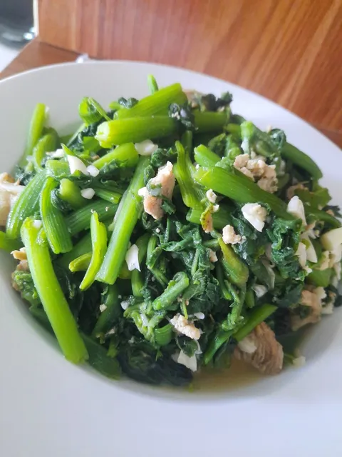 Rau bí xào tỏi đối với người H’rê không chỉ là một món ăn, mà còn là hương vị của núi rừng, của những mảnh vườn sau nhà xanh mát. Từ luống bí bò lan bên bờ nương, người phụ nữ hái những ngọn non còn đẫm sương sớm, mang về rửa sạch rồi xào cùng vài nhánh tỏi giã tay thơm nồng. Món ăn không cầu kỳ, chỉ thoáng mùi tỏi lan trong bếp, màu rau xanh mướt trên mâm là đủ làm bữa cơm thêm ấm cúng. Vị thanh ngọt tự nhiên của rau hòa với vị mặn mà vừa phải khiến ta nhớ đến sự chân chất, mộc mạc của người H’rê – giản dị mà đậm tình. Ăn một đũa rau bí xào tỏi như cảm nhận được hơi thở núi rừng, như thấy cả tình quê trong hương vị bình dị ấy.